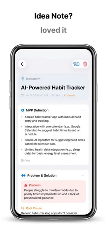 La aplicación no solo almacena notas, sino que les da estructura. Diferentes tipos de notas obtienen diseños únicos y pasos sugeridos, facilitando la conversión de ideas en acciones. Indicaciones personalizables y plantillas de categoría te permiten personalizar el sistema a tu flujo de trabajo. Sin embargo, para desbloquear su funcionalidad completa, es posible que necesites una suscripción de pago.